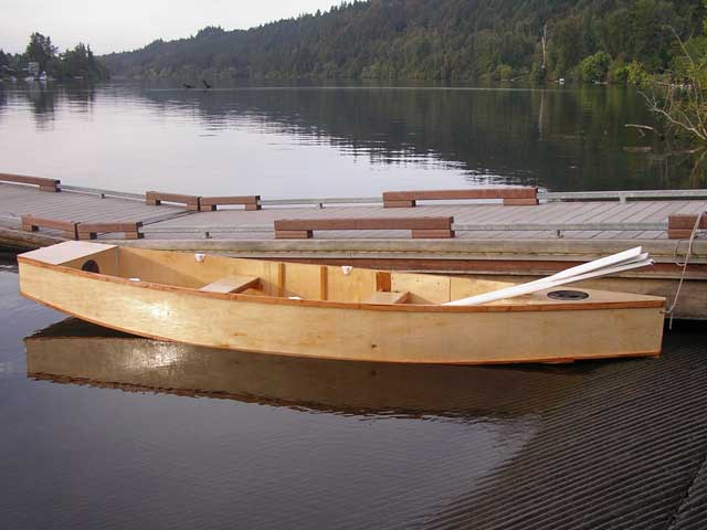 I have been building this boat for a few weeks, trying to see if it would be something that could be used as a 'rapid build' project (assembled and sailed in a weekend.) It is essentially a Phil Bolger designed Junebug - but with a different cockpit layout. |