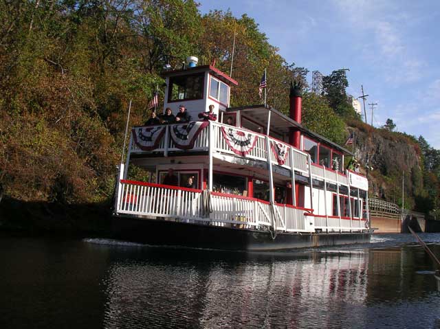 Before we could go into the locks, we had to move aside and let the Willamette Rose paddle wheeler come out of the locks. She was ferrying people up and down the river in support of Lockfest 2007.