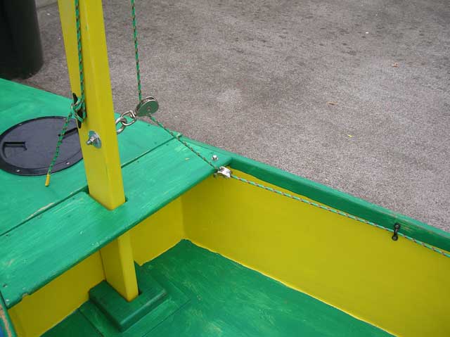 Because the sail is so far forward, I had to set up the lines so they run back to the aft position - the position that will be used when sailing. There is nothing worse than trying to jump forward to drop the sail in an emergency.