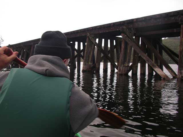 I talked Jim B into helping me run some tests on my Junebug. I wanted this boat to be the mythical All Boat: capable of being paddled like a cane, rowed like a rowboat, and sailed like a sailboat. And she paddle quite nicely, thankyouverymuch. I mean really, as a canoe, the Junebug was just fine. |