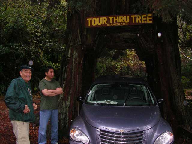 I didn't get to see the Trees of Mystery. It was raining and my travel companions are made out of sugar or something. Over my protestations, we continued down 101 another couple of miles, pulled over at the Yurok Reservation, and drove through a redwood. |