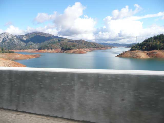 Lake Shasta as seen from I-5. This must be a GREAT sailing lake when it is full.