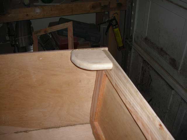 I also added a couple of flush-mounted breasthooks at the rear corners. Again: all these thwarts, gussets, and breasthooks are screwed in with stainless steel screws - the only screws left in the boat when it is done.