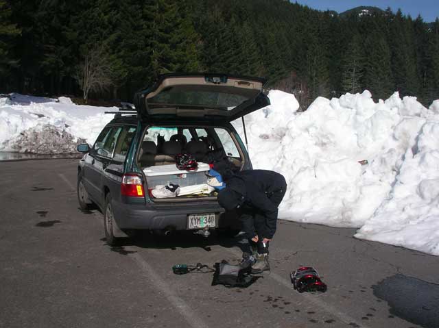 We hadn't broken out the snowshoes in 2 years. It took us a few minutes to remember where all the straps went.