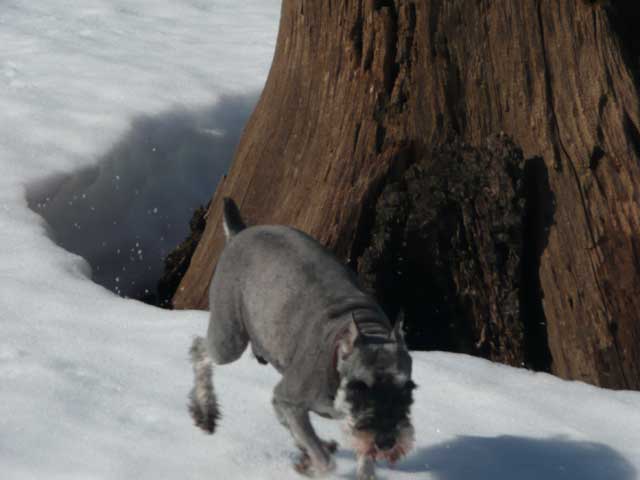 BeBop is a great dog, but he isn't very outdoors-y. Anytime he gets near a tree or stump, he falls down in the gap between the trunk and the snow. I have had to rescue him many times - not today, the snow wasn't deep enough.