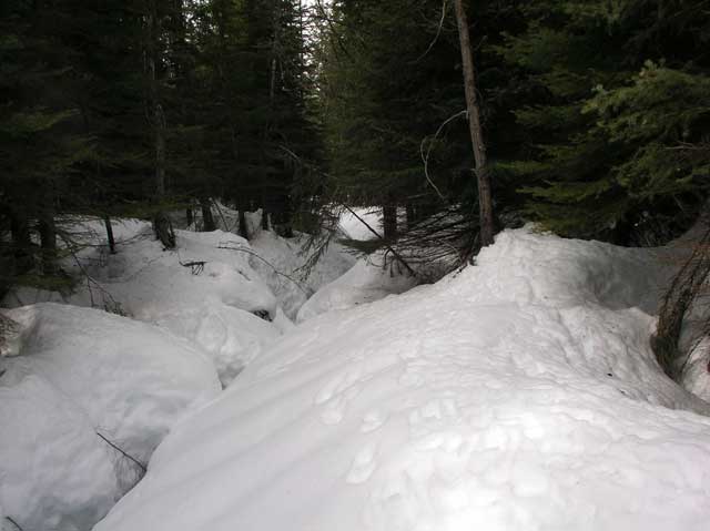 And this is where we gave up. The snow was melting and caving in at the center of the trail - the sides were too difficult to walk on. We were about a mile or so in at this point.