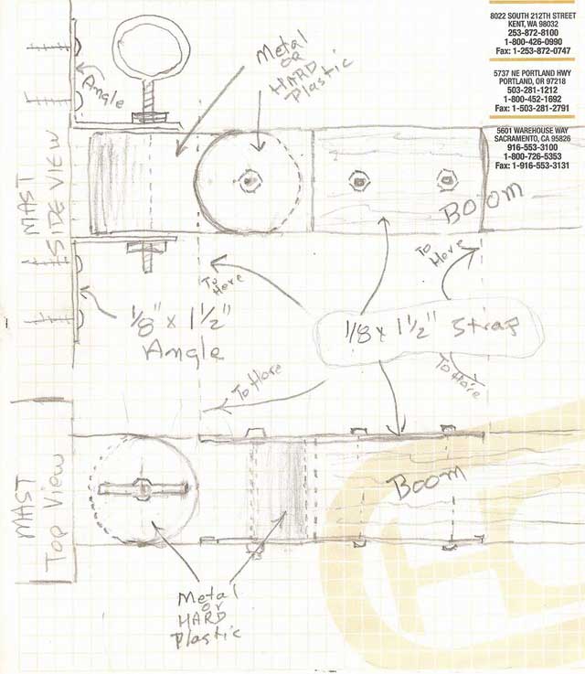 Pat had a very small budget and wanted to make use of existing or found parts when he could. He fabbed together a fine gooseneck from some spare bits he had lying around and aluminum from the local True Value hardware store.