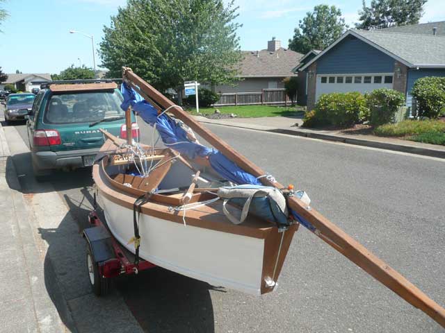 The complete boat - including all standing and running rigging, mast and spars, sails, rudder, tiller, and daggerboard - all fits on the trailer. Just hook it on your trailer hitch and go.