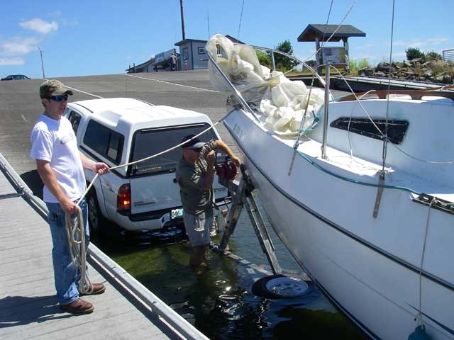 The wind was blowing pretty well - probably up to 15mph some times. We launched the boat on the lee side of the docks and she has so much freeboard, she almost pulled me into the water just from the force of the wind on her sides.