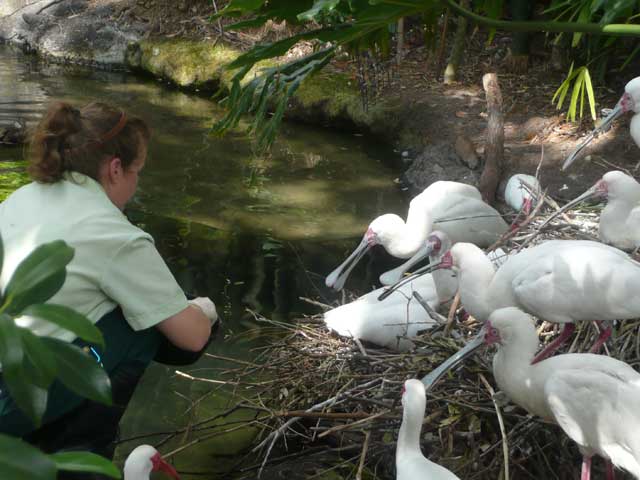 Disney has really gotten in to the nature conservatory business, and Animal Kingdom is its center. This lady was feeding what looked like meatballs to nesting spoonbills. We offered to help, but apparently you have to have some sort of certification. |
