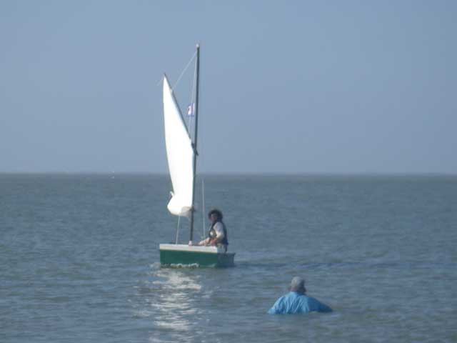 Jon got forced out of position on his approach and this kindly guy waded out to bring him in. Jon politely said "I've sailed nearly 200 miles, I'd like to sail her in."