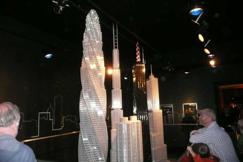 These are Lego models of Chicago skyscrapers. The twisty one is the newest design,
