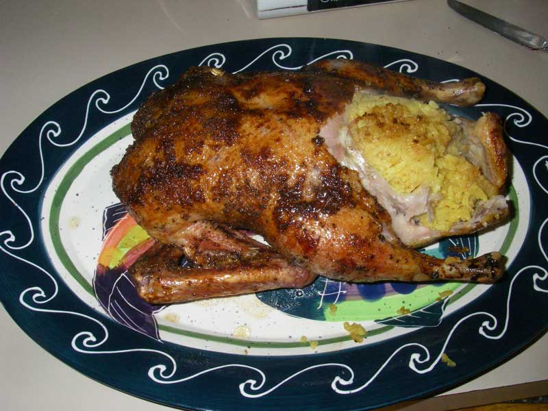 Larry, a friend of mine who knows more about cooking that I do, suggested stuffing the duck with saffron rice. University of Oregon's colors are Green and Yellow, so the saffron was a good choice.