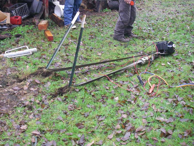 And drove 2 fence posts deep into the muck to act as anchors. The winch pulled mightily and the anchors started moving - but the boat was moving, too!