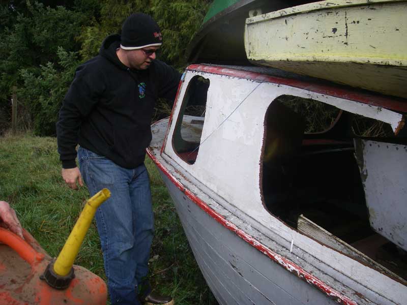 Now is where the fun begins: How do we get 4 waterlogged boats to burn? We've done this 3 times before - you'd think we'd have a plan. Greg had thought he was going to have 12 gallons of diesel, but he only had 3, and Frank (fellow Coot and the property owner) had 3 gallons of gas. |