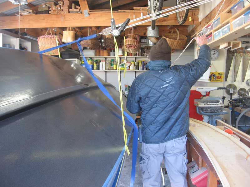 Mike is a man of inventiveness and determination - good qualities in an adventuring partner. He rigged up a method to turn over his 23' long, 5'5" wide, 400lbs boat all by him self. That's no easy feat, lemme tells ya.
