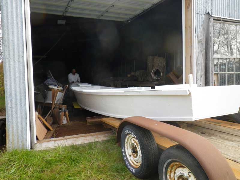 The next morning, we started at dawn, first running over to Greg's house to pick up the trailer, then out to the Secret Boat Factory to pick up the Laguna. Both places are in areas best described as "Oregon's Appalachia" and you have to be on constant watch for banjo players. |