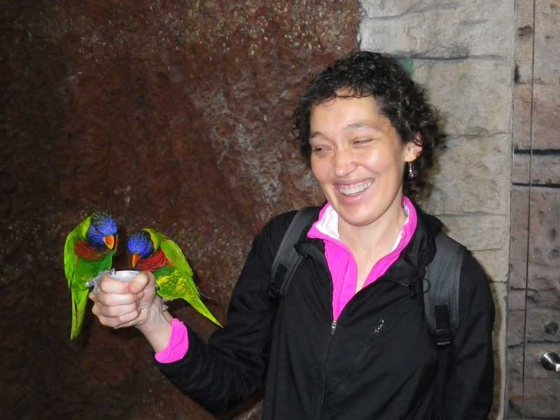 For some reason, the aquarium had a lorikeet feeding area. You have to keep a firm grip on the cup of nectar or the little bastards will rip it out of your hand.
