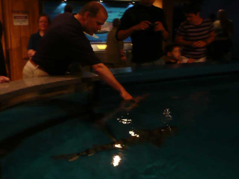 Sorry for the picture quality, but this shows me petting a leopard shark. Petting sharks is cool, but I prefer petting rays. They are softer and seem to enjoy it more.