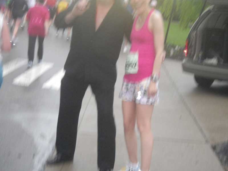 G*DAM Auto functions on the new cameras! It first takes a couple seconds to beam a light into the subject's eyes to narrow the pupils, then takes a pre-flash to prevent red-eye and add backlight, then takes the photo. And here I lowered the camera after the pre-flash, cutting off the head of Elvis, who had been kind enough to come out and sing for us. |
