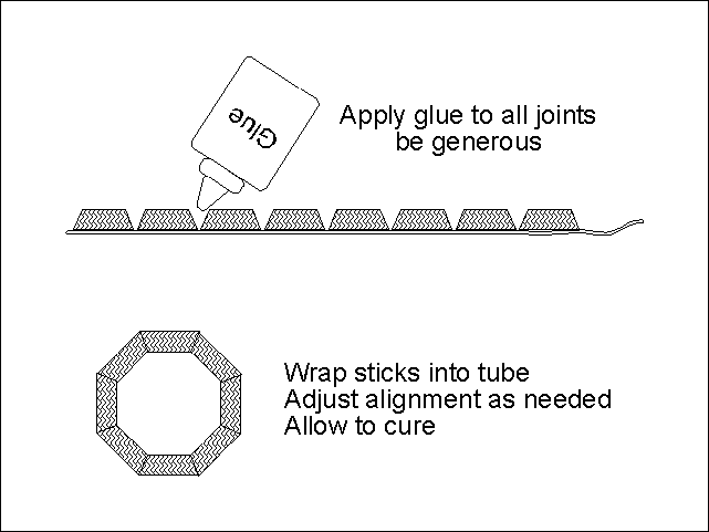 seam (except the last seam, of course.) Unwrap the mast, apply the glue,