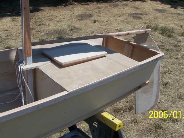 Michalak has the transom cut down to use a standard outboard. I don't believe in outboards for the TX200, so I eschewed that particular innovation for a standard flat top transom. See the hatch on the aft airbox? I have one on the for'd airbox, too. It is fun making scale models. |