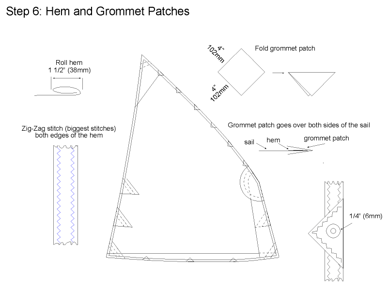 I just more or less evenly space the grommet patches. The foot of the sail does not need as many patches as the head.