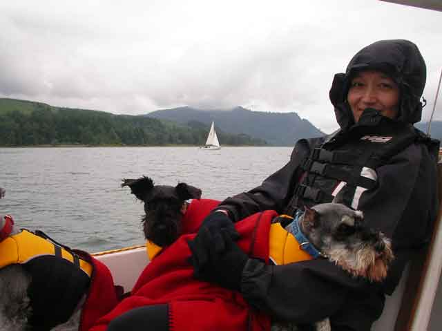 Somehow I don't see Keely fitting the role of Deck Bunny. She bundles up too tightly. That's Greg in his 21ft MacGregor off in the distance. It seems to be that I don't know how to sail after all. Then the battery died on my radio so we couldn't keep in contact. I was having a heck of a day. |