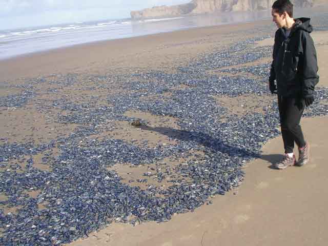 There are millions of jellyfish - Blue Sailors - on the beach. It makes for quite a stench.