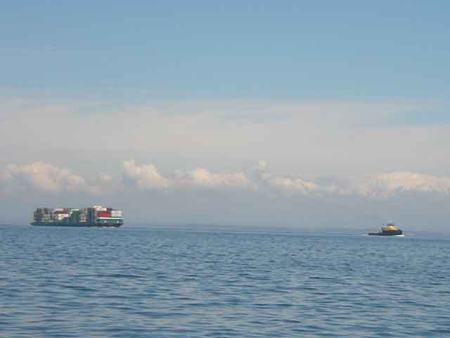 It was a LONG slog back. Mostly no wind, and I ignored my GPS and got off course. I worried the entire time about not having enough fuel to motor all the way back. I sailed for a bit but had to motor probably 80% of the time because of no wind. I debated playing chicken with this barge, but decided to let him win. Right of Mass and all that.