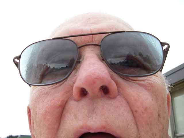 I spent the next few weeks painting her inside and out - brilliant white for the interior and topsides, and brilliant red for the hull. It came time to make the sails, so I enlisted my trustworthy neighbor, Lyle to help out. Here he is learning how to use the new camera. |