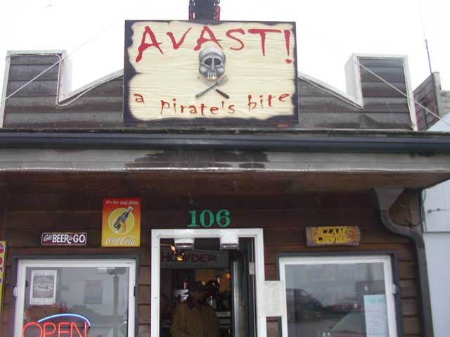 And as the day wore on - getting colder and wetter all the time, Greg, Virgil, Dick and I wandered up into Depoe Bay proper to get some lunch. We chose the 'Avast, a Pirate's Bite' for our spot - a new restaurant in town.