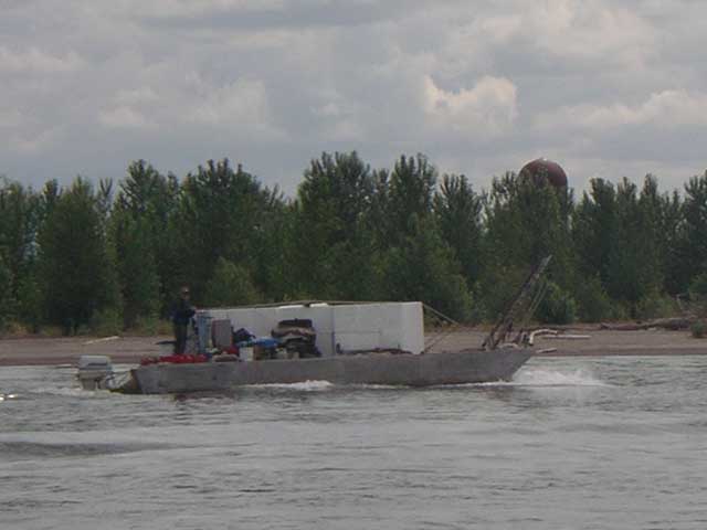 There were lots of boats, mostly fat-assed power boats tossing huge wakes, but this guy caught my eye. He seems to have found a business in hauling something that looked like refrigerators on his amped up Puddle Duck Racer.