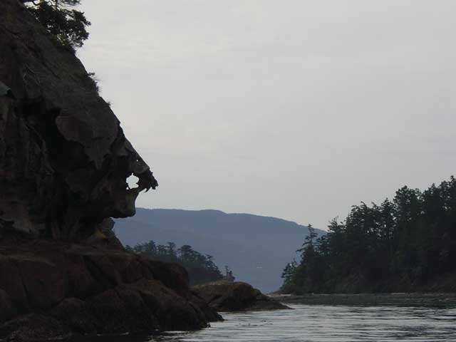 We dubbed this Snaggletooth Rock. It'd be a good landmark for a pirate story, innut? '20 paces East of Snaggletooth Rock, you'll find a great X carved into a stone. Dig down 8 feet to find the treasure.'