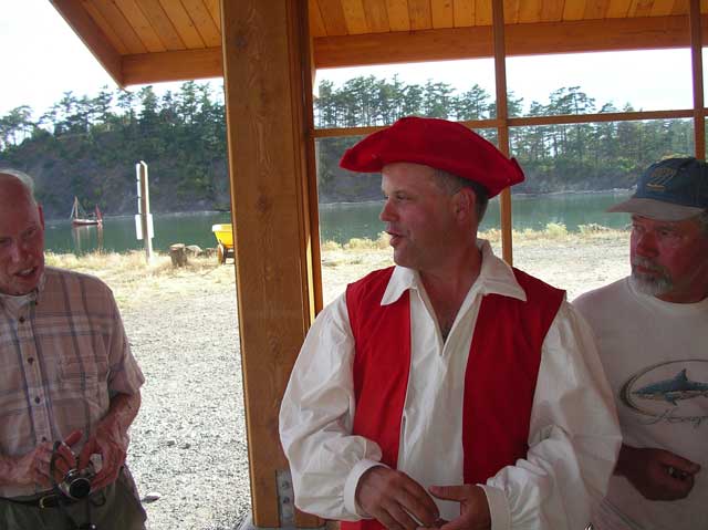 Just for a hoot, I dressed in my 18 th century merchant seaman costume I made in preparation for my upcoming stint before the mast on the Lady Washington. The color scheme matches my boat.