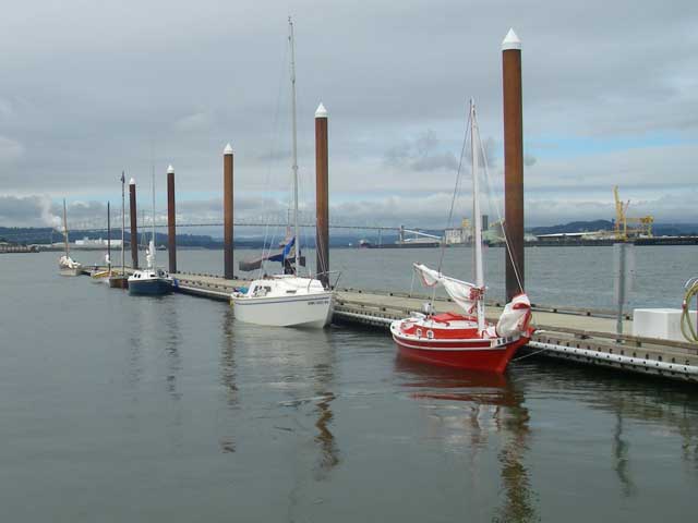 Here is the fleet at the (free) public docks at Rainier. Notice how we have learned to dock on the protected inside instead of the exposed outside? Who says you can't teach an old Coot new tricks.