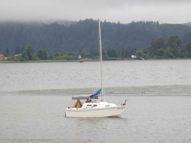 Tom pulled in a little after the main body of the fleet, and David had gone on ahead to Skamokawa - our intended stopping place for the night. David called me and reported on the port at Skamokawa: There wasn't one. There was no place for us to tie up or even drop a hook for the night.