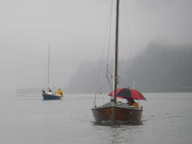 It was almost like sailing through a cloud. David deployed his emergency bimini.