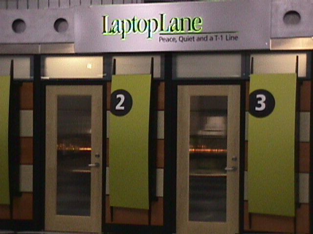 We changed planes in Chicago, where they now have these little closet-like cubicles where people can hook up their laptops (and still feel at home, I suppose). At 5 in the am, these were shut tight, but that didn't stop people from trying them.
