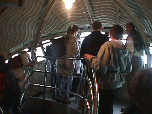 There ain't much room at the top, but at least you aren't lonely. Those wavy lines in the roof are her hair, we are just inside a shell of copper.