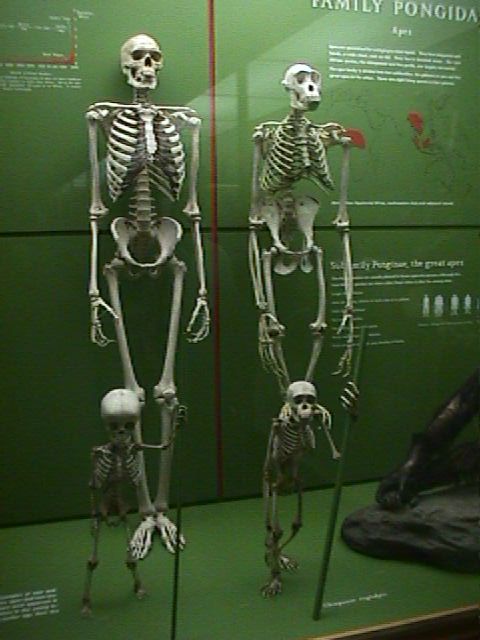 Skeletal differences between humans and apes.