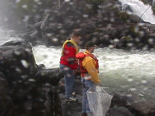 Dave and Doug (with the specially constructed eel net) survey the purported eeling grounds. It didn't take too long for us to say "&^%* this!" and make up other plans.