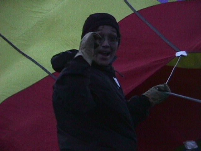 She was excited. The bag is enormous, and the force exerted by the incoming air would often pull her forward.