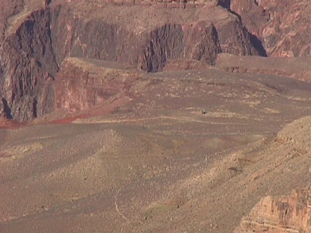 That structure in the middle (you know you can click on the picture to blow it up) is the potty house on the way down the South Kaibab. An excellent place to come to your senses and turn around.