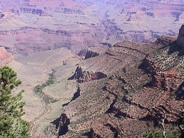Here is another view of our trek up. That gulch leading away is the Bright Angel trail, that line you see to the left is the Plateau Point trail.