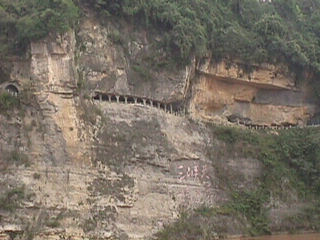 As we neared Gezhou Ba, we passed Three Traveler's Cave, an historic site that has inscriptions from famous people from China's past.