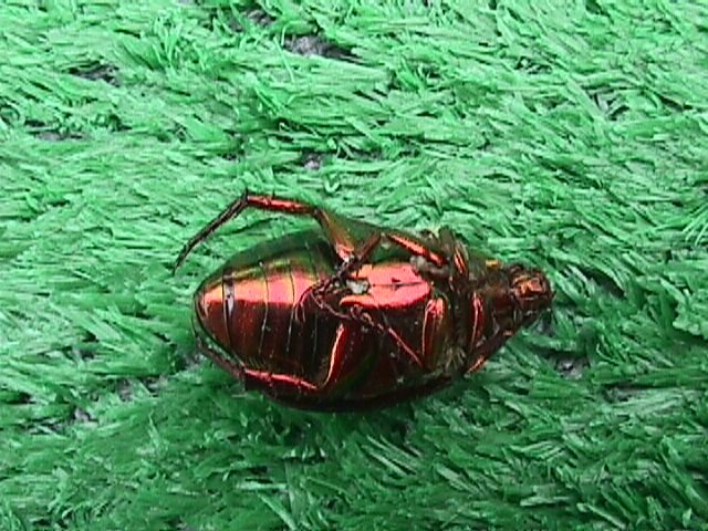 That is a pretty beetle. Too bad it is dead. Really too bad that I stepped on it, thinking it was a nut someone had dropped. In an effort to balance the karma, I immortalize this beetle here and now.
