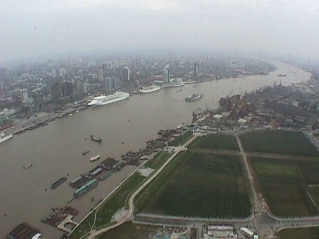 The Huangpu river give access to the sea and also to the Yangtze river, which gives access to China's interior and industrial centers.