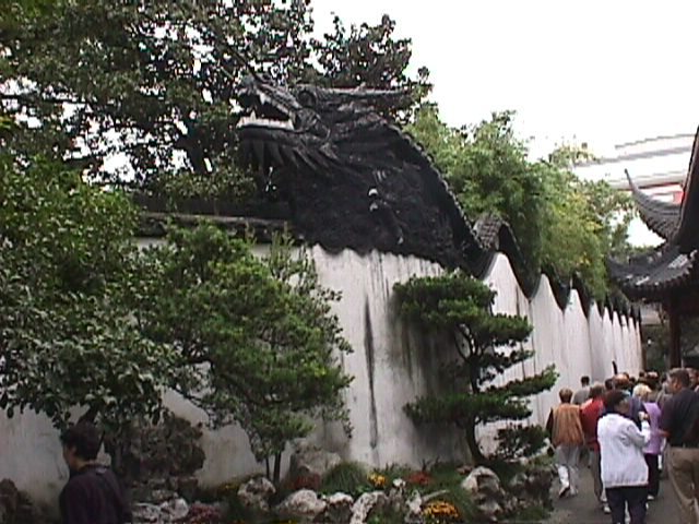 Yu Garden is surrounded by this white wall, topped by the undulating dragon.