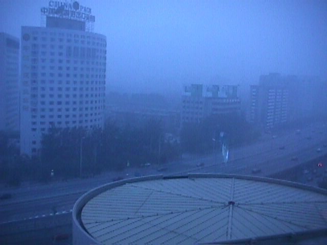 We met up with our tour group and guide. We were bussed to the Beijing Sheraton and told to rest up for tomorrow, which promised to be a busy day. The weather was awful, as seen from our hotel room, gritty and foggy and threatening rain. Keely and I went for a walk down the road before turning in. |